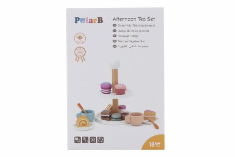 Dřevěný čajový set. Sada obsahuje stojan , dva talíře, 2 šálky, dvě lžičky a 9 dortíků. Rozměry výrobku 18 x 25,7 cm. Rozměry balení cca 27 x 18,5 x 18,5 cm. Věk 18m+