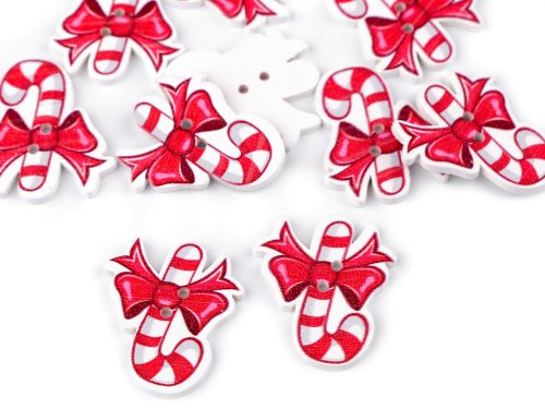 Dřevěný dekorační knoflík vánoční - červená (10 ks)