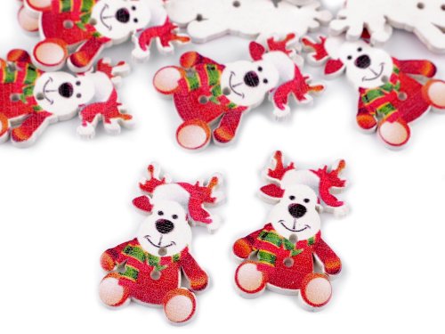 Dřevěný dekorační knoflík vánoční - červená sob (10 ks)