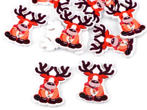 Dřevěný dekorační knoflík vánoční - červená světlá sob (10 ks)
