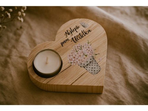 Stylový a srdečný dárek, kterým potěšíte každou paní učitelku. Tento dřevěný svícen ve tvaru srdce je navržen pro čajovou svíčku a zdobený nápisem „Nejlepší paní učitelka“. Spojuje v sobě přírodní materiál, jemný design a vděčné poselství.