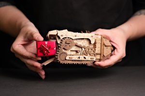 Chcete darovat peníze, poukázku nebo jiný drobný dárek skutečně originálním způsobem? Spojte překvapení se zkouškou důmyslu a trpělivosti. S boxem v inovativním designu vyrobeným z březového dřeva neuděláte chybu. Běžný dárkový balicí papír se používá pouze jednou, tento box využijete opakovaně. Objevte tajemství vesmíru a prozkoumejte jeho zákoutí. Podaří se Vám odhalit všechna jeho tajemství a vyluštit všechny hádanky? Tato originální dárková krabička a úniková místnost v jednom je inspirována legendární Dunou Franka Herberta. Postupným odhalováním hádanek se nakonec dostanete ke skryté přihrádce ukryté uvnitř. Nenechte si ujít vzrušující zážitek ze hry, množství fascinujících hádanek a nové jedinečné mechanismy. A nemusíte si hrát sami, zapojte celou rodinu nebo přátele. Puzzle box je vhodný až pro 4 objevitele. Je pečlivě vyroben s použitím různých barev dřeva, a to z něj činí vizuálně úžasný doplněk každé kolekce. Rozměry boxu: 16,5 x 9 x 8 cm Rozměry vnitřního prostoru: 2,6 x 3,6 x 6 cm Věk:14+ Materiál: březové dřevo