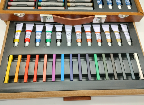 Tento kufřík není jen sbírkou uměleckých potřeb, je to inspirace zabalená do krásného dřevěného balení. Otevírá dveře do světa barev, tvarů a nekonečných možností tvoření. Je to investice do radosti z umění a do rozvoje vlastní kreativity.