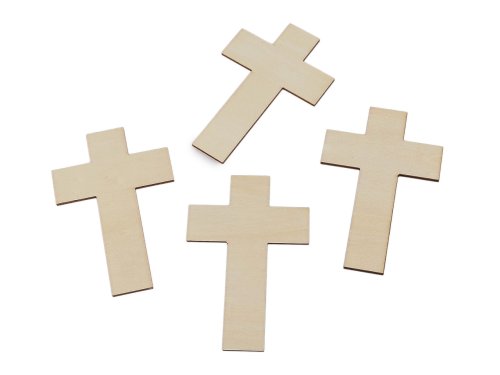 [Kříže z dřevěné přírodní překližky] využijete na aranžování, např. dušičkových a smutečních [věnců, ale] i svátečního stolu u různých náboženských příležitostí. Bude i zajímavou ozdobou na Halloween. Povrch každého kříže je hladký, přírodní, připravený pro různé druhy úprav jako je malování, lakování, decoupage, gravírování apod. Kříže č.2 mají nahoře průvlek k zavěšení velký 4 mm. Sáček obsahuje 4 kusy.