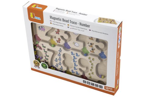 Dřevěný magnetický labyrint s kuličkami ve tvaru čísel. Rozměry cca 30 x 22 x 1,3 cm. Rozměry balení cca 31 x 25,5 x 4 cm. Věk 18m+
