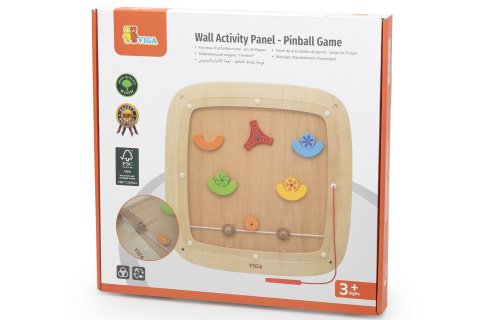 Dřevěný nástěnný panel - cvrnkací hra. Připravit, zamířit, odpálit! Tato pinballová hra spojuje akci a učení. Děti používají magnetické pero k uchopení barevných disků a jejich vystřelování vzhůru pomocí elastických šňůrek. Rozměry hry 40x40x3 cm. Rozměry balení 41x41x4 cm. Věk 3+