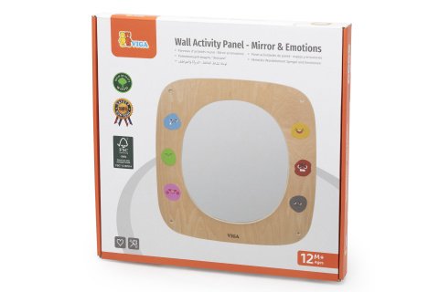 Dřevěný nástěnný panel se zrcadlem a výrazy v obličeji. Rozměry panelu 40x40x1,5 cm. Baleno v krabici. Rozměry balení 41x41x4 cm. Věk 12m+