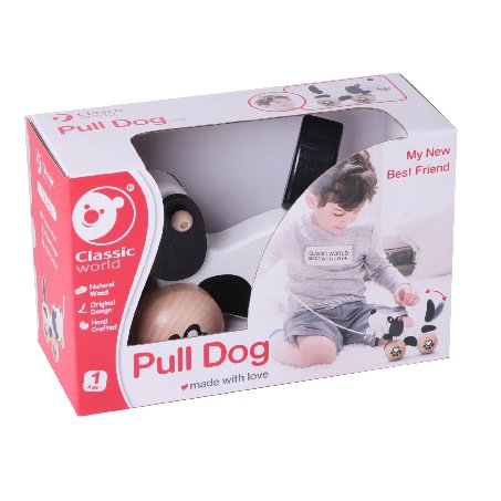 Tahací pes je jednnoduchá hračka na kolečkách, která je vyrobena z kvalitního dřeva a je určená pro děti od 1 roku. Součástí hračky je rolnička. Tato hračka bude skvělým pomocníkem pro děti při jejich prvních krůčcích. Pejsek při pohybu vrtí ocáskem. Hračka pomáhá rozvíjet jemnou motoriku rukou. Rozměry balení 22 x 14 x 10 cm. Vhodné pro děti od 12 měsíců.