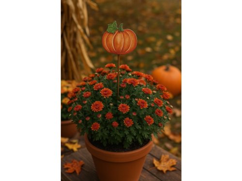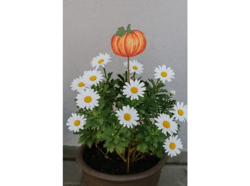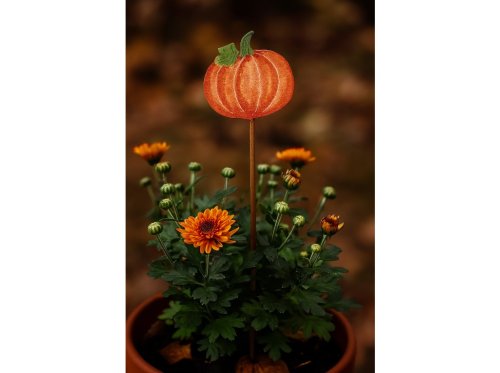 Dřevěná dýně v typické oranžové barvě na špejli se hodí do podzimních dekorací, květináčů i aranžmá. Skvěle doplní další zápichy a vytvoří příjemnou atmosféru.