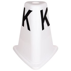 Sada 12-ti kuželů s písmeny pro drezurní obdélník. Kužely jsou vyrobeny z ABS plastu, který zaručuje vysokou odolnost vůči povětrnostním vlivům, UV záření, dlouhou životnost a minimální nároky na údržbu. Kužely je možné pro úsporu místa a přepravu stohovat. Potisk je vyrobený z polepové fólie. Sadu doporučujeme k produktu Drezurní obdélník 20 x 60 m - sada: 12 ks - barva: bílá - potisk: černý, 16 x 14 cm - materiál: ABS plast - výška: 47 cm - délka strany: 43 cm - hmotnost: cca 0,8 kg - průměr horního otvoru: 5 cm - rozměry ve složeném stavu: 75 x 45 x 45 cm