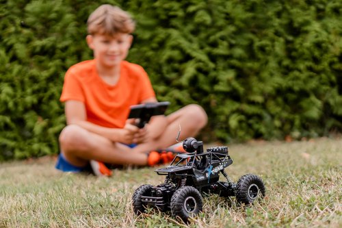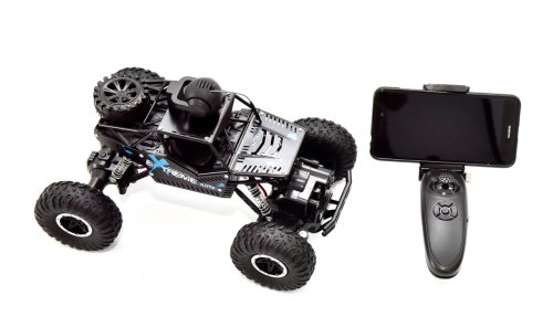 Auto na dálkové ovládání, které jezdí všemi směry a zvládne i těžší terén. Navíc si můžeš mobil upevnit na dálkový ovladač a nainstalovat aplikaci LH CAR, pomocí které můžeš auto řídit nebo natáčet videa. Aplikaci stáhneš na Google play nebo App store. Auto můžeš řídit buď mobilním telefonem nebo ovladačem. Provoz auta na bateriový pack (součást balení) - nabíjení 2,5 hodiny, doba jízdy 20 minut. Při nabíjení svítí na nabíječce červená kontrolka, když je auto nabité svítí tmavě červeně. Dálkový ovladač provoz na 2x1,5V baterie typu AA (nejsou součást balení)