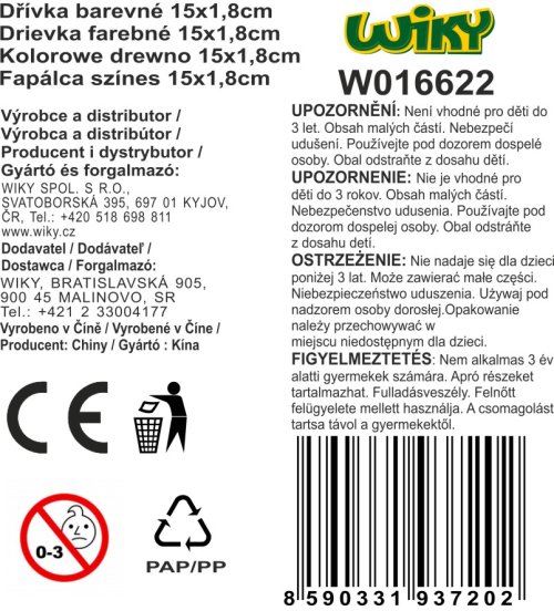 Dřívka barevné 15x1,8 cm. Lehká kreativita. 6 různých barev dřívek.