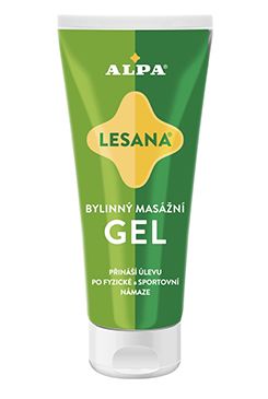Alpa bylinný masážní gel Lesana má osvěžující a chladivé účinky díky obsahu mentolu.
