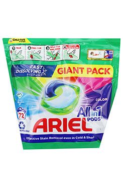 Kapsle na praní Ariel All in one PODS color Tyto inovativní kapsle účinně odstraňují odolné skvrny a zápach i při praní na 30 °C Hloubkové čištění i při nízké teplotě Rychlé rozpouštění i ve studené …