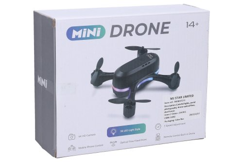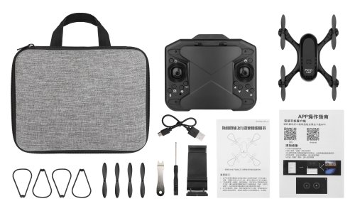 Dron skládací do ovladače s WIFI kamerou 720p RC na dálkové ovládání. Rozměry dronu 9x9x4 cm, ovladače 12x14x6,5 cm. Frekvence 2.4GHz. Světelné efekty. Bateriový pack 3.7V 650mAh do dronu součástí, 3xAAA baterie do ovladače nejsou součástí. USB kabel součástí. Ovládání ovladačem nebo aplikací ze smartphonu přes WIFI. Pořizování fotografií a fotek 720p ovladačem, aplikací či gestem, stiskem automatický vzlet a přistání, nouzové přistání, obrat o 360 stupňů, udržování dané výšky, nastavení 3 rychlostí letu, headless mode. Provoz 8-10 min, nabíjení 60 min, dosah 50-80 m. Váha 375 g.