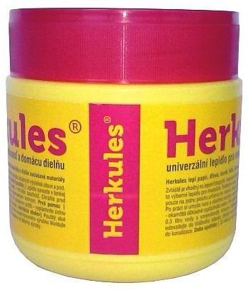 Univerzální lepidlo Herkules lepí papír, dřevo, korek, kůži, dřevovláknité materiály a další savé materiály. Lepidlo je ředitelné vodou. Návod k použití: lepidlo naneste v tenké vrstvě na podložku, přilepte dílky a nechte zaschnout. Dávkování: 150 - 300 g,1 m2. Doba zasychání: přibližně 15 minut.