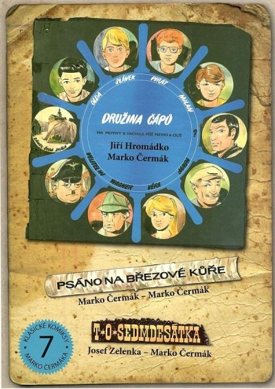 DRUŽINA ČÁPŮ je komiks, který na motivy Emila Vachka psali Nemo (Jiří Hromádko) a Ouš (Bohumil Kolář), vycházel v časopise SKAUT JUNÁK od září 1969 do srpna 1970. Už o rok později se tato trojice tvůrců sešla v časopise PIONÝRSKÁ STEZKA při spolupráci na MODRÉ PĚTCE – která ne náhodou připomíná právě DRUŽINU ČÁPŮ.DRUŽINA ČÁPŮ je příběhem o družině vodních skautů a jejich mnohdy nebezpečných dobrodružstvích během válečného roku 1944.Dalšími komiksy v albu jsou: Psáno na březové kůře, T. O. Sedmdesátka a Tábor ve Žlutých skalách.