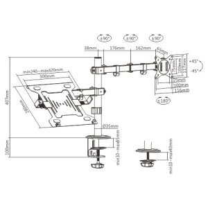 Držák na stůl s ramenem monitoru a stojanem na notebook - podporuje monitory do 32" a notebooky do 15,6", rameno se otáčí (+180° ... -180°), naklání (+/-45°) pro změnu úhlu čtení a umožňuje otáčet displej …