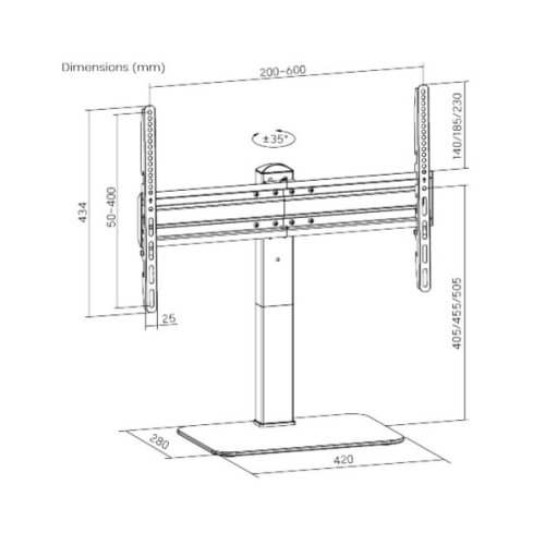 Držák je kompatibilní s různými typy televizí. Snadno k němu své zařízení upevníte. Je určený pro jednu televizi s úhlopříčkou od 37" do 70". Unese hmotnost až 45 kg. Zajistěte si pohodlí pro sledování vašich oblíbených pořadů a natočte si obrazovku tak, aby vám v televizi neutekla jediná scéna.