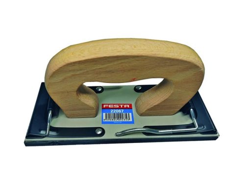 Profesionální ruční držák na brusné materiály - plátna, papíry, mřížky. Rukojeť je vyrobena z kvalitního bukového dřeva. Opracování i tvar ručky je přizpůsoben optimálnímu sklonu ruky při broušení, aby docházelo k rovnoměrnému tlaku na celou brusnou plochu při minimální námaze. Rychlá a snadná výměna brusného materiálu, silné uchycení. Guma na pracovní ploše umožňuje dobré přizpůsobení a kopírování broušené plochy.