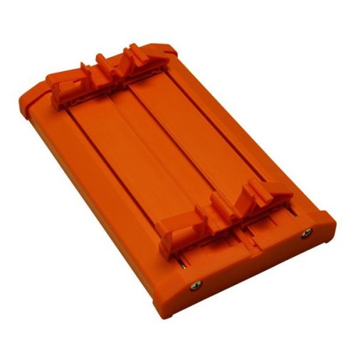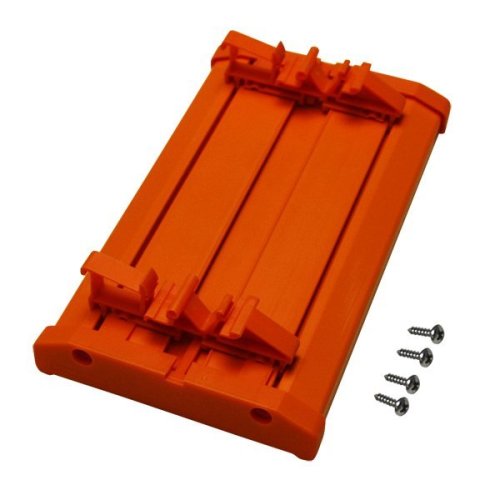 Držák desky/modulu CPM na DIN lištu. Boční části plastové konstrukce jsou upevněny 4 šrouby.