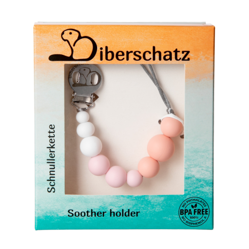 Krásný, barevný klip na dudlík, který udržuje dudlík v blízkosti vašeho dítěte a zároveň zabraňuje jeho upadnutí.