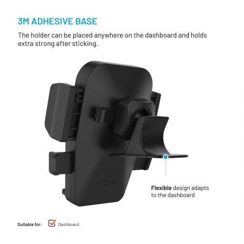 Zajistěte si skvělý výhled na obrazovku svého mobilního telefonu, i když jedete na dovolenou nebo na služební cestu. Univerzální držák do auta FIXED Iconiq Dash upevníte pomocí 3M pásky na libovolné místo ve vašem voze. Podstavec je ohebný, takže držák snadno přichytíte i na zakřivenou přístrojovou desku.