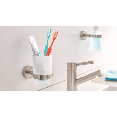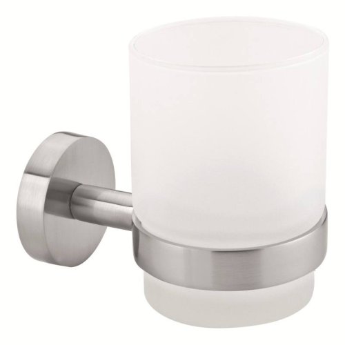 • stylový držák kelímku na zubní kartáčky, vzhled nerezové oceli v kombinaci saténového skla