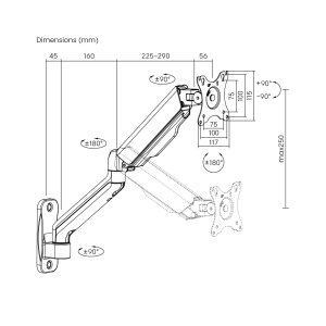 Držák můžete použít s různými typy monitorů. Snadno k němu své zařízení upevníte. Je určený pro jeden monitor s úhlopříčkou od 17" do 32". Odolné ocelové rameno unese hmotnost až 9 kg. Mechanická pružina umožňuje nastavení tuhosti podle hmotnosti obrazovky.