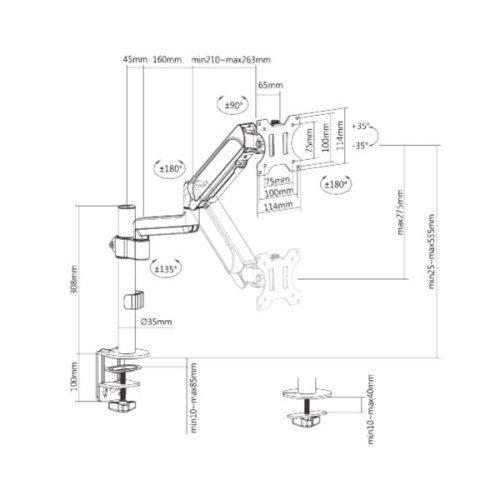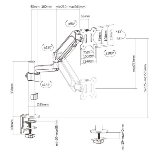 Držák se vyrábí z kvalitní oceli, proto je velmi pevný a odolný. Uchycení monitoru je bezpečné a stabilní. V balení se nachází průchodky a svorky pro instalaci téměř na jakoukoliv pracovní plochu.