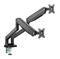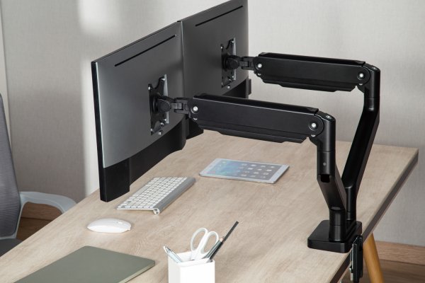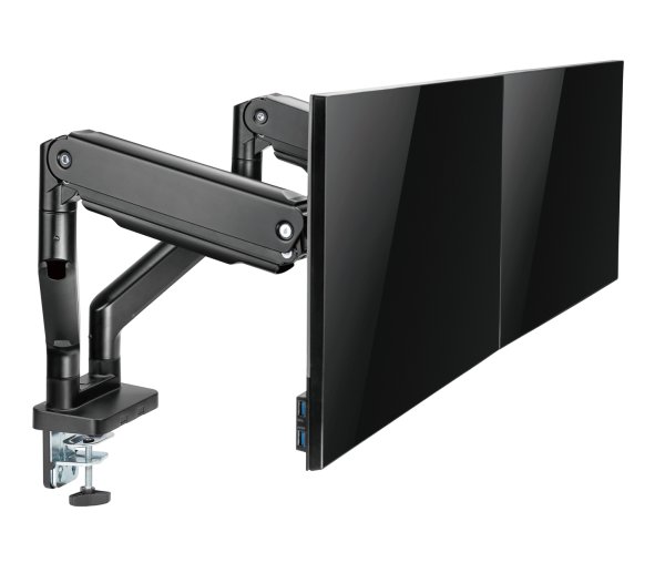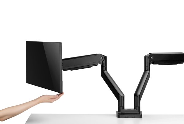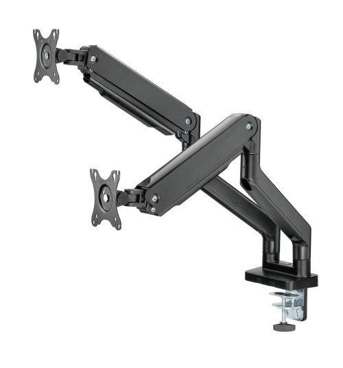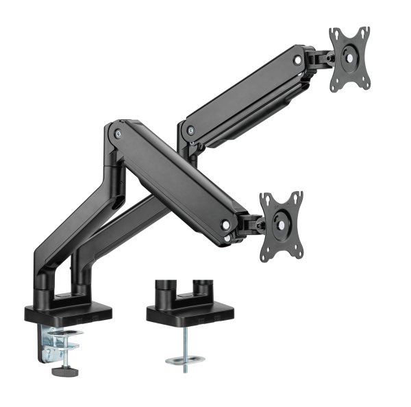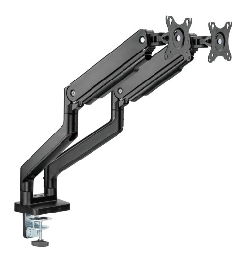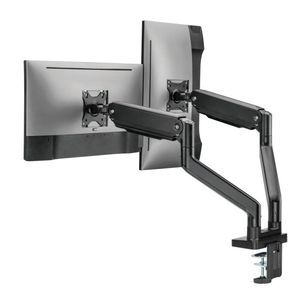 Díky odolné ocelové konstrukci poskytuje stabilní podporu pro dva monitory s úhlopříčkami 17" až 35" a hmotností až 16 kg. Flexibilní konstrukce pro dostatečné nastavení výšky a pozorovacích úhlů s možností nastavení orientace monitoru na výšku nebo na šířku. Součástí balení jsou průchodky a svorky pro instalaci na téměř jakoukoliv pracovní plochu. Odnímatelná deska VESA pro uživatelsky přívětivou instalaci.