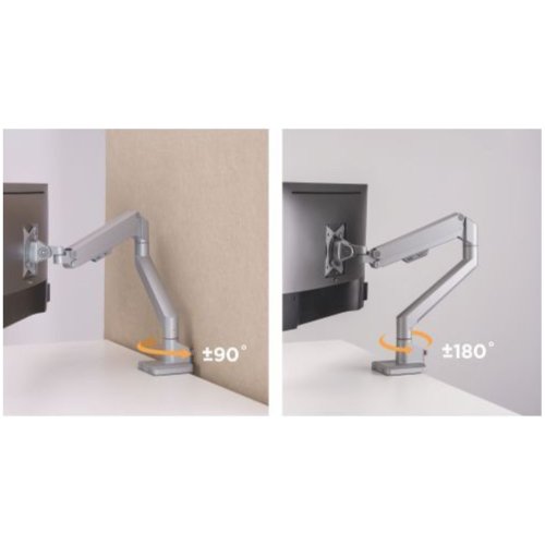 Díky odolné ocelové konstrukci poskytuje stabilní podporu pro jeden monitor s úhlopříčkou 17" až 32" a hmotností až 9 kg. Flexibilní konstrukce pro dostatečné nastavení výšky a pozorovacích úhlů s možností nastavení orientace monitoru na výšku nebo na šířku. Součástí balení jsou průchodky a svorky pro instalaci na téměř jakoukoliv pracovní plochu. Odnímatelná deska VESA pro uživatelsky přívětivou instalaci.