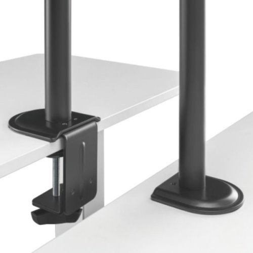Držák se vyrábí z kvalitní oceli, proto je velmi pevný a odolný. Uchycení monitoru je bezpečné a stabilní. V balení se nachází spony, které vám umožní přehlednou organizaci vedení kabelů, a průchodky a svorky pro instalaci téměř na jakoukoliv pracovní plochu.