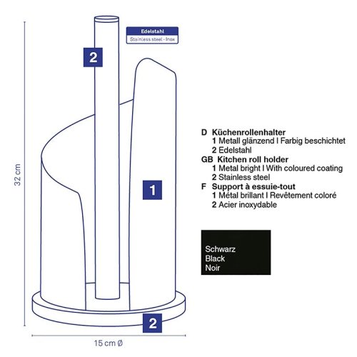 Držák na papírové utěrky STELLA kovový, černý KL-11200