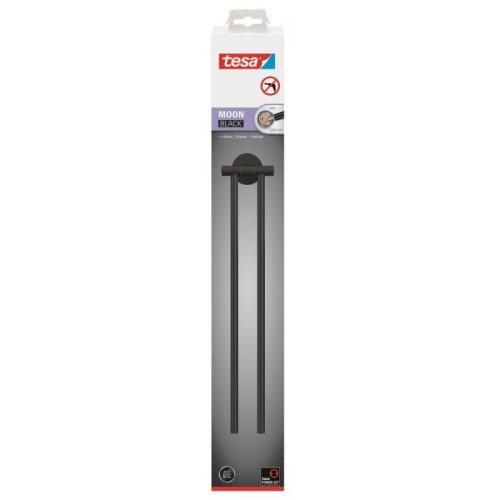 samolepicí tesa® Moon Black držák na ručník dvouramenný technologie tesa® Power.Kit - univerzální montážní řešení pomocí lepidla drží na glazovaných dlaždicích, kovu, přírodním kameni, mramoru, betonu, …