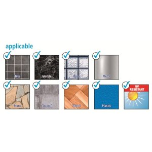• na obkladech, kovu, přírodním kameni, mramoru, betonu, dřevu, sklu a mnoha druzích plastů