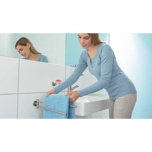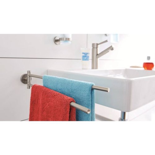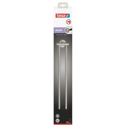 tesa® Moon Držák na ručník dvouramenný stylový otočný držák na ručníky vzhled nerezové oceli povrch je voděodolný, zaručeně nerezavějící a má úpravu proti otiskům prstů technologie tesa® Power.Kit - …