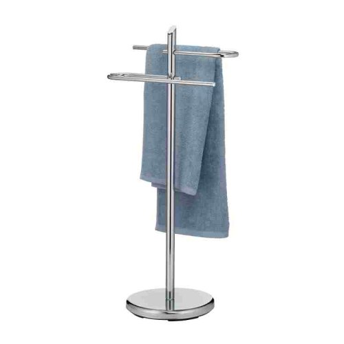 Držák na ručník Ken z kovu, práškově lakovaný, je dostupný v jednoduchých variantách kovový, chromovaný, černý a bílý. Díky zaobleným prvkům základní desky, kolejnice a ramen na ručník působí tato stojací sada moderně a dynamicky. Varianta: lesklá, chromovaná (stříbrná), výška: 88 cm, průměr základní desky: 25,5 cm.Kov lesklý chrom 25,5 cm, 88 cm v