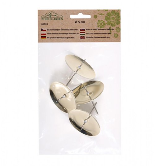 Držák na svíčku zápich, pr. 50 mm, ZLA (4 ks). průměr: 50 mm barva: zlatá balení: 4 ks Bodec do adventních svícnů, hladký, zlatý.