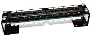 Držák pro patch panely se zadním zářezem pro instalaci na zeď případně do jiného rozvaděče. Je možno použít pro 12 portový nebo 24 portový panel. Včetně montážní sady. Výška 52mm šířka 50mm