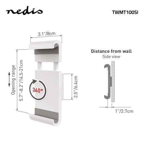 Sledujte pohodlně videa na tabletu nebo na něm pište. Namontujte držák Nedis na stěnu a umístěte do něj tablet s šířkou od 14,5 cm až do 21 cm. Držák je otočný o 360°, takže si obrazovku pootočíte na výšku či na šířku. Záleží, co zrovna sledujete. Ve svorce držáku se nachází slot pro pohodlné nabíjení tabletu, zatímco ho využíváte.