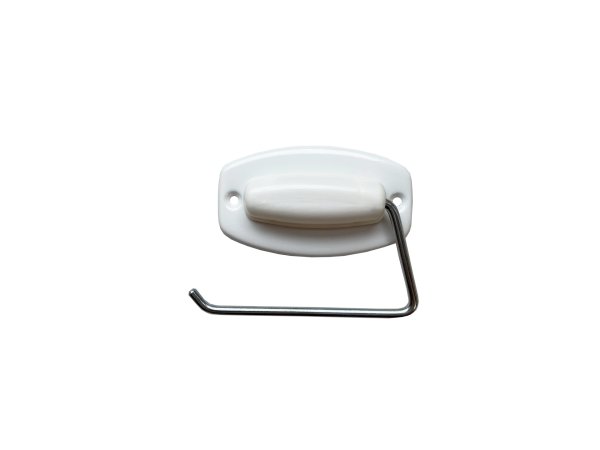 Kovová komaxitově lakovaná bílá základna, lesklý držák toaletního papíru. Montážní materiál součást balení. Rozměry základny 11.6 x 6.8 cm. EAN 8594032170265 / 8594174760737