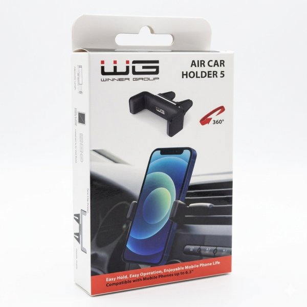 Držák WG Air Car nabízí rychlé a bezpečné uchycení telefonu bez nutnosti použití nářadí. Stačí jej rozepnout a pomocí systému Push and Grip připevnit na ventilační mřížku. Silikonové části ochrání mobilní zařízení před poškozením a zároveň zajistí pevné držení i při jízdě po nerovném terénu. Díky svému kompaktnímu provedení je držák ideální i pro menší interiéry vozidel.