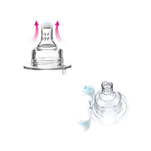 Systém vnitřních otvorů vytvořených podle modelu laktačních kanálků reguluje (zpomaluje) průtok pokrmu a stimuluje dítě k aktivnímu sání. Umožňuje kombinovat kojení a krmení z láhve.