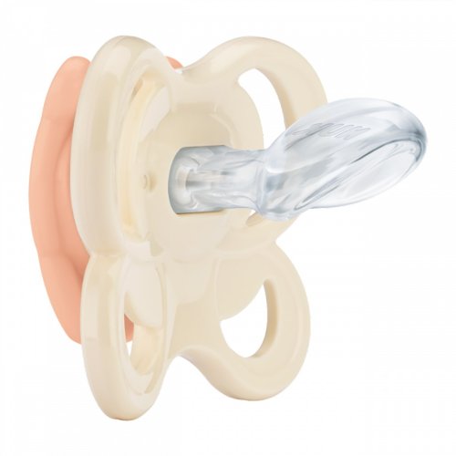 Sací část je vyrobena z měkkého, vysoce kvalitního silikonu a má promyšlený tvar: horní část je extra měkká, takže se jemně přizpůsobí podnebí dítěte, zatímco plochá spodní strana poskytuje jazýčku dostatek prostoru pro přirozený pohyb. Podporuje zdravý sací reflex.