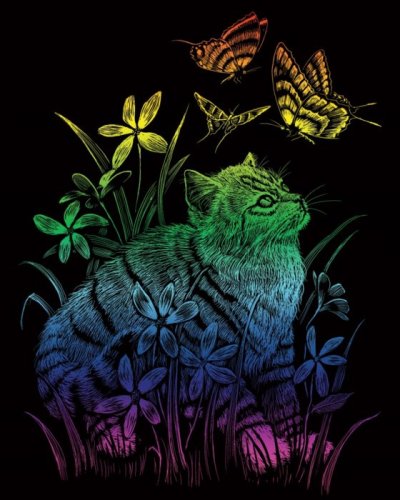 Škrabací obrázky probouzí kreativitu a nadšení a nejen malé výtvarníky zaměstnají na dlouhé hodiny. Papír je potažený černou vrstvou skrývající podklad s duhovým efektem.
