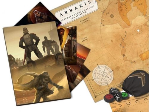 Bonusový balíček ke hře DUNA: TAJEMSTVÍ RODU obsahuje další materiál, který obohacuje a doplňuje hru:• Poznejte životní příběhy svých postav díky čtyřem složkám. Každá je věnována jedné postavě. Jejich příběhy vám pomohou lépe pochopit dobrodružství, která se mají odehrát.• Přidejte do hry skryté informace pomocí tří obálek s tajnými zprávami. Každá postava zná určitá tajemství, která si smíte soukromě přečíst před každou kapitolou.• Užijte si jedinečnou sbírku pěti krásně ilustrovaných pohlednic s vyobrazením významných míst v Tel Gezeru, která navštívíte při hraní hry Duna: Tajemství rodu.• Vyzdobte si stěnu pokoje velkou mapou Arrakisu (56 x 42 cm). Nezbytnost pro všechny fanoušky Duny jenž rozpoutá nejednu diskuzi.• Dodejte své hře styl díky jedinečnému látkovému pytlíku se znakem rodu Atreidů a sadě robustních dřevěných prémiových žetonů následků.Veškerý obsah je v češtině. Balíček obsahuje:• 4 příběhy postav (na grafických listech)• 12 tajných zpráv pro každou z postav (v obálkách)• 5 pohlednic z Tel Gezeru (17,6 x 25 cm)• 1 velká mapa Duny (56 x 42 cm)• 1 tematický pytlík se znakem rodu Atreidů• 5 prémiových dřevěných žetony následků• 1 ilustrovanou složku