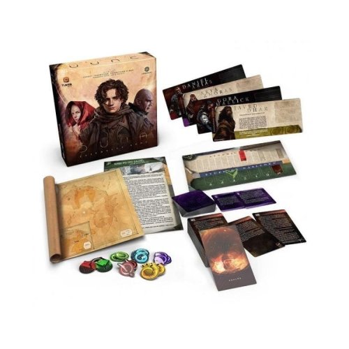 DUNA: TAJEMSTVÍ RODU je kooperativní příběhovou hrou, v níž se připojíte k hnutí odporu vzdorujícímu harkonnenské moci! Během originálního dobrodružství inspirovaného nejnovějším velkofilmem Duna bude vaším úkolem včas a s omezenými zdroji splnit sérii misí. Je nemožné projít všemi setkáními, která hra nabízí, a její příběh se bude proměňovat podle rozhodnutí a obětí, jež budete během hry muset učinit. Podaří se odhalit tajemství Arrakisu právě vám?Na konci každé ze 4 kapitol podá vaše skupina hlášení, ve kterém na základě získaných informací určíte své další kroky. Tato hlášení také rozhodnou, jakým směrem se bude celý příběh ubírat.Hra nezná vítěze ani poražené. Namísto toho čeká na hráče jedinečný příběh utvořený jejich vlastními zážitky a rozhodnutími.Přidejte se k odporu proti rodu Harkonnenů!• Hra je určena pro 1-4 hráče od 14 let.• Pravidla jsou v češtině. Herní materiál je v češtině.Hra obsahuje:• 1 balíček setkání (72 karet)• 1 balíček indicií (24 karet),• 4 úvody kapitol (označené P, I, II, III),• 1 ukazatel následků• 1 ukazatel času• 1 herní plán• 5 žetonů následků• 27 žetonů zdrojů (6 zbraní, 6 koření, 6 vody, 6 lstí, 3 moudrosti)• 1 list s nálepkami dovedností• 4 desky postav/stoupenců• 1 mapa Duny (42 x 28 cm)• 1 mapa Tel Gezeru• 1 pravidla hry