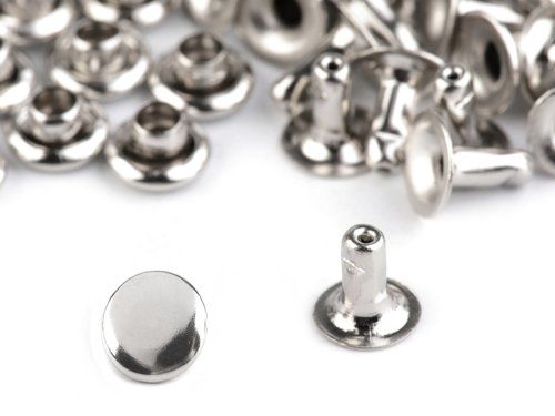 Duté nýty se používají k výrobě či ozdobení kabelek, tašek, batohů, opasků, obojků pro psy, atd. Návod k použití: Jednu část nýtu provlečete materiálem a spojíte druhou částí. [K aplikaci použijte lis a piston, který najdete pod kódem 790331.]