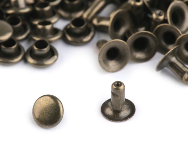 Duté nýty se používají k výrobě či ozdobení kabelek, tašek, batohů, opasků, obojků pro psy, atd. Návod k použití: Jednu část nýtu provlečete materiálem a spojíte druhou částí. [K aplikaci použijte lis a piston, který najdete pod kódem 790331.]